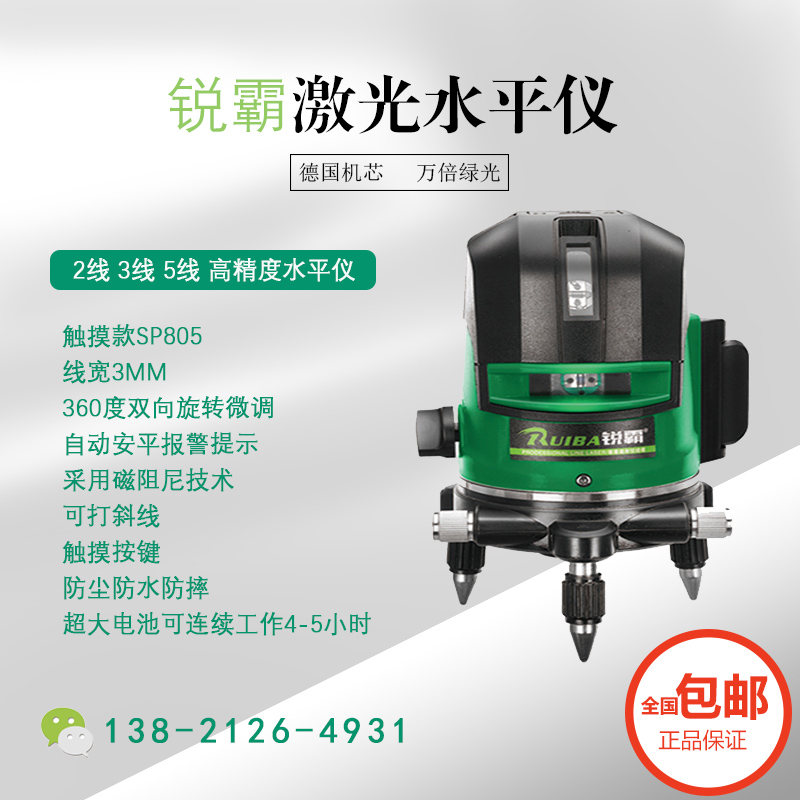 | SPY808-5线 | 激光水平仪精品版 | 18650数显大电池/线充/纸盒/塑箱 | 台 | 3kg | 3天 |